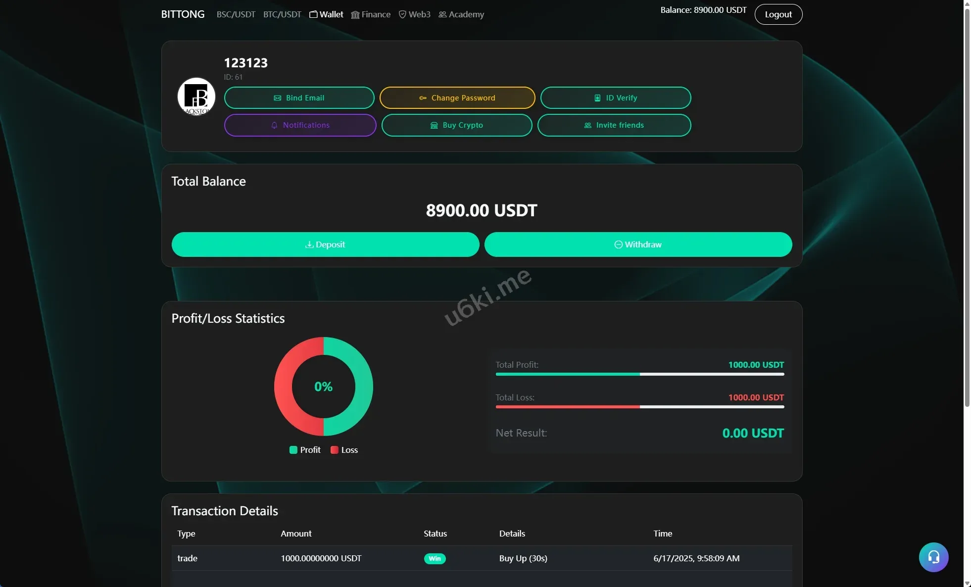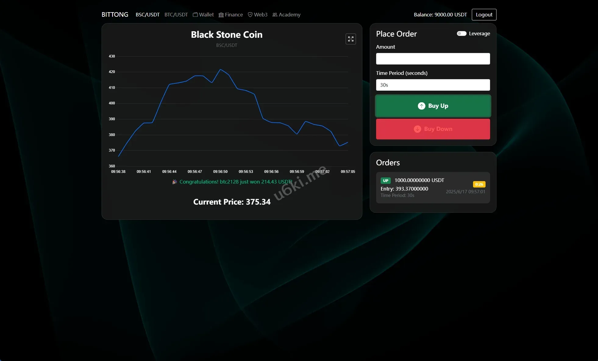 系统只有BSC跟BTC交易,支持秒合约跟杠杆交易