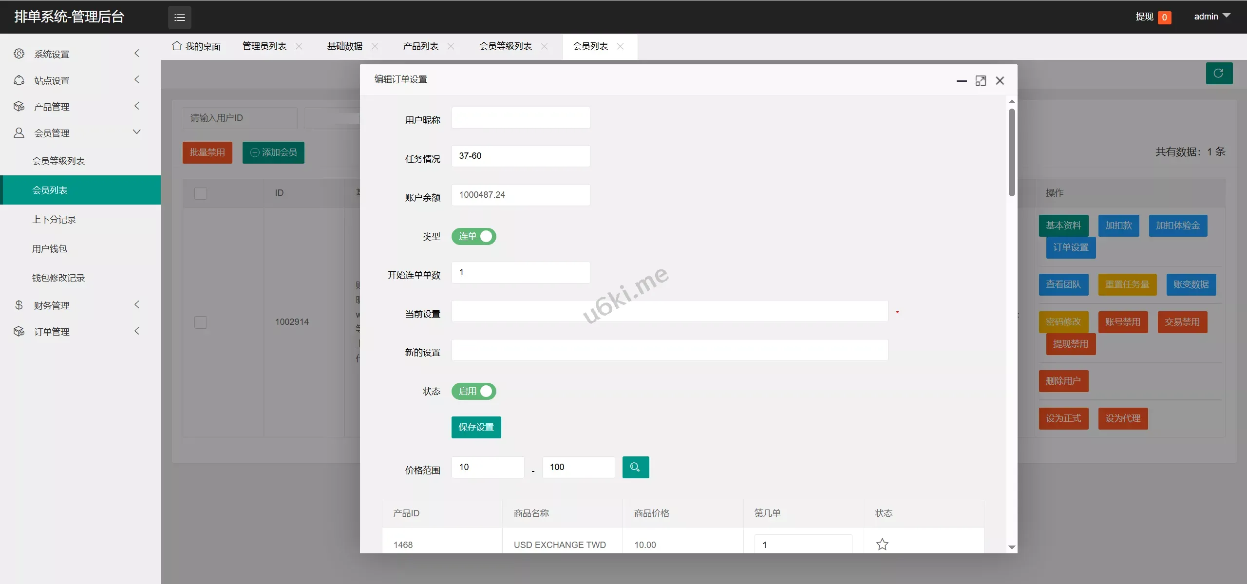 【XE多语言外汇兑换刷单抢单源码】卡单连单+实时汇率+5级分销+前端uniapp纯源码+后端PHP 刷单新的模式,用外汇兑换、虚拟货币兑换这种方式做的刷单,核心都差不多,只是界面不一样,看上去刷单盘的痕迹不明显 uniapp写的前端,后端是PHP,全开源的 没有其他附加的功能,后台可以设置5级代理返佣比例,也是比较简单的一款程序,会员列表选择会员可以设置卡单连单参数