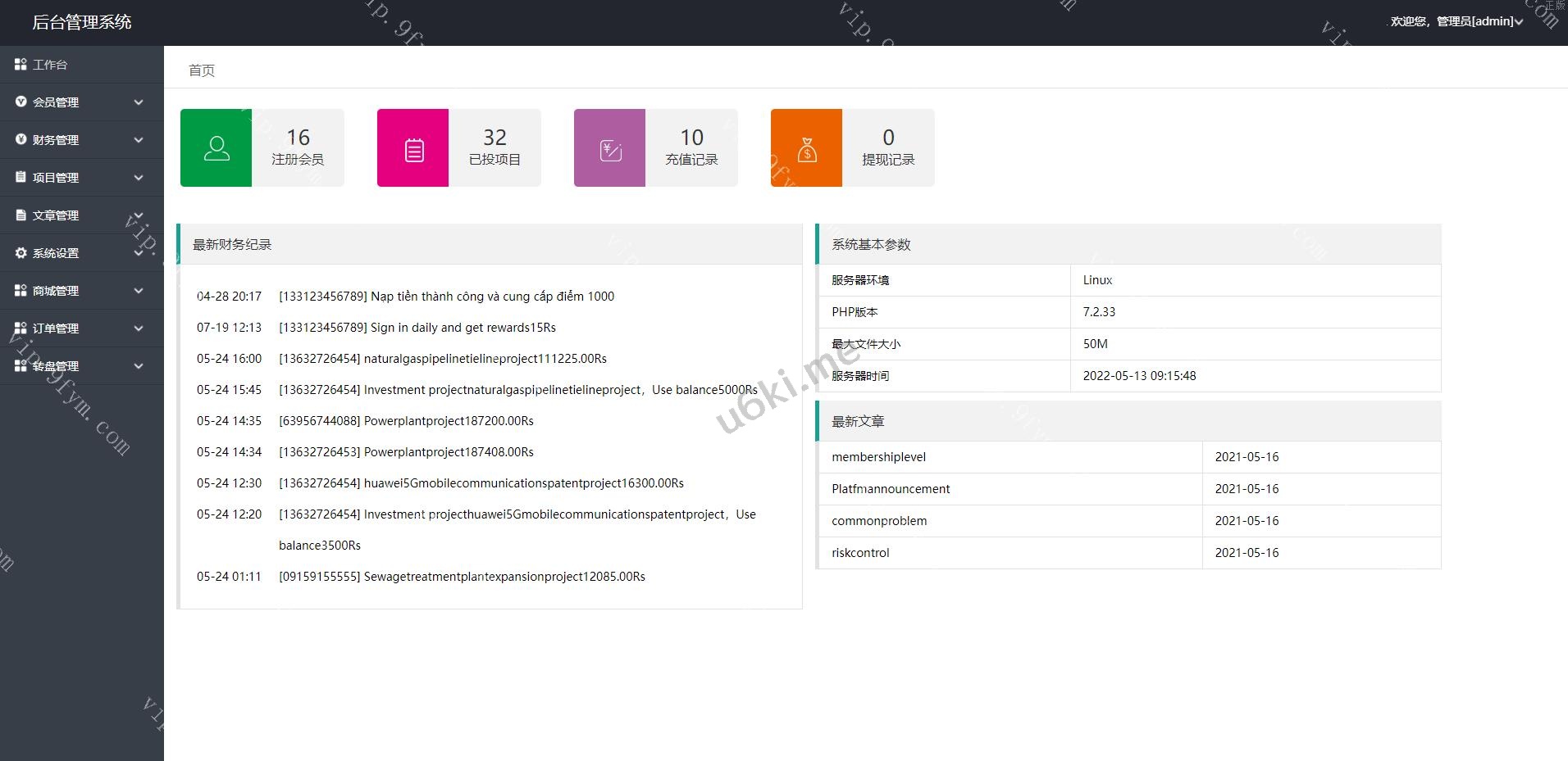 二开英文版p2p投资理财源码/众筹投资分红系统 英文版p2p投资理财源码/众筹投资分红系统 目前为单英文版,需要加语言可以定制 多返息方式:自然日 脚本自动结算 新增加收益分成 团队一条线明细 三级收益分成 积分商城 优惠券 幸运大转盘可以帮助运营者增加互动性 后台直接设置网站信息等,设置对于操作权限!文件齐全 编号:1344 付费精品源码