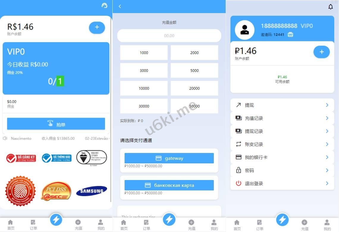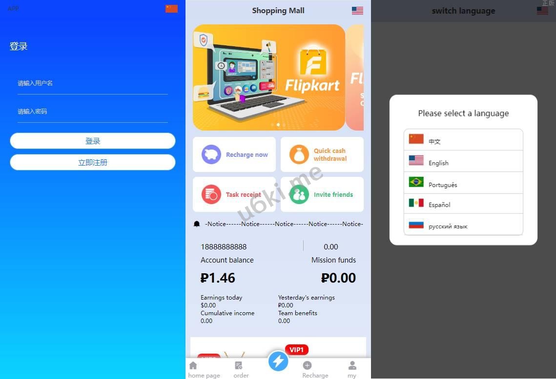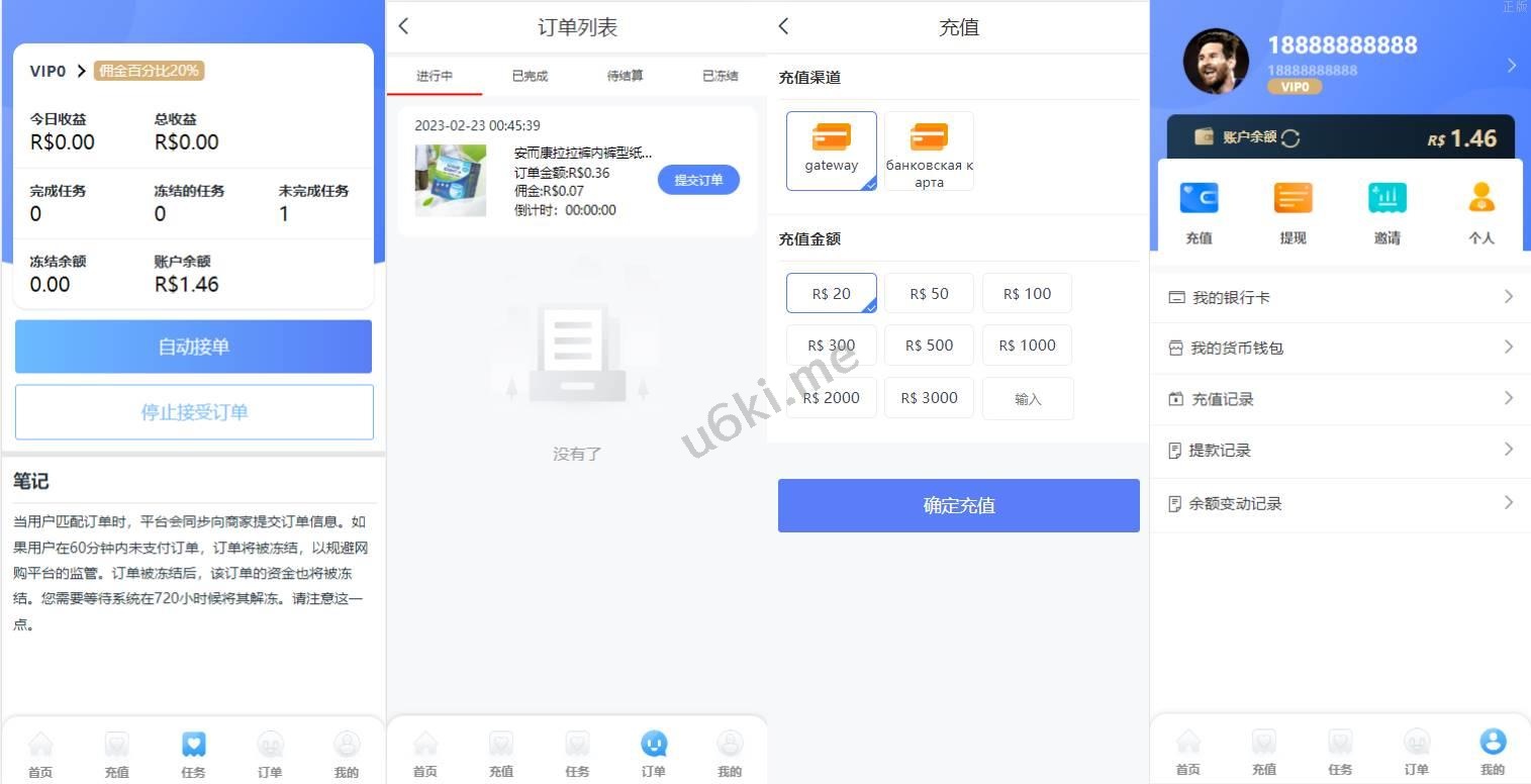 双UI多语言海外抢单刷单系统/分组派单/订单自动匹配系统 此套系统是别人全新二开的,非以往的框架开发 前端双套UI支持后台切换,多语言支持切换设置默认语言(源码里附带多个语言包需要自己设置) 系统功能支持: 待结算:订单提交了不会马上结算,可以修改这个待结算,如果输入0那么订单提交了马上结算, 超时时间:订单匹配到在这个时间内没有提交会被冻结,冻结了没办法提交,只有后台手动解封 会员有分组时就按照分组里的规则派单,没有分组时按照会员等级匹配