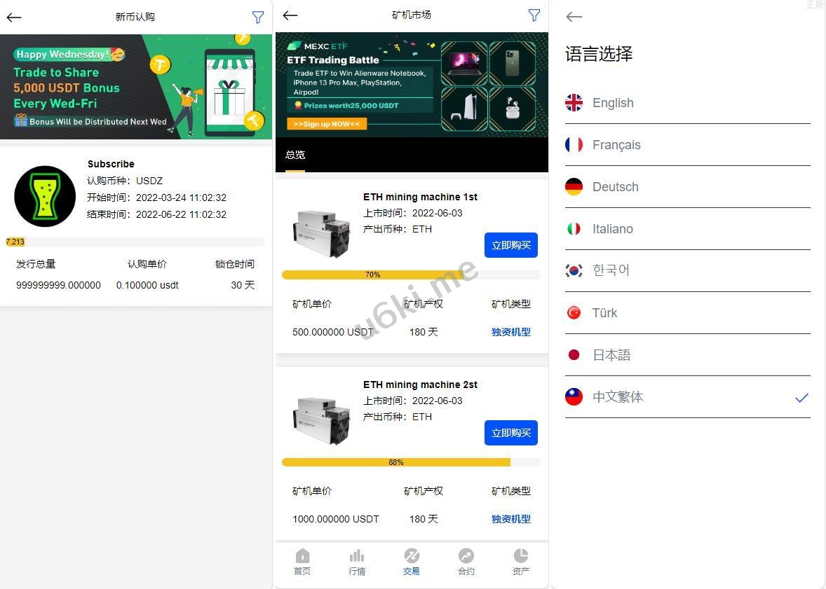 系统8国语言 支持币币交易合约交易 挖矿 新币认购 带有PC端