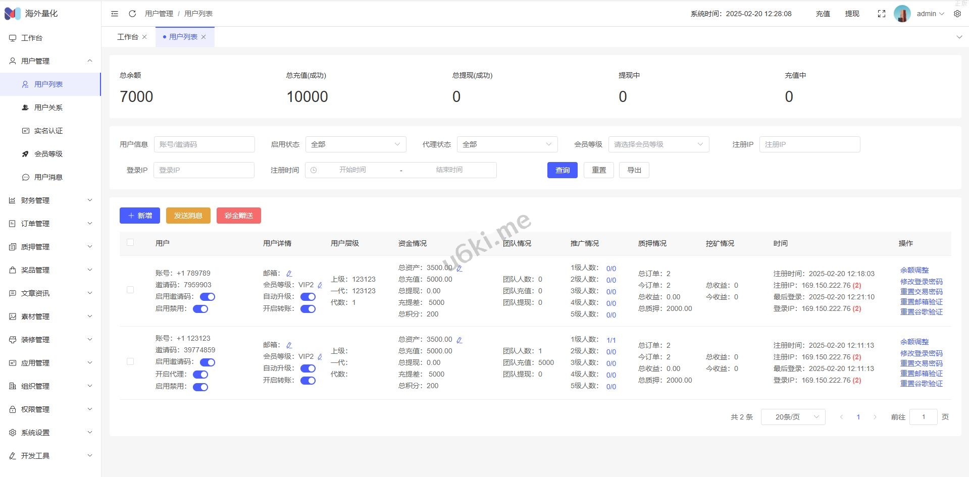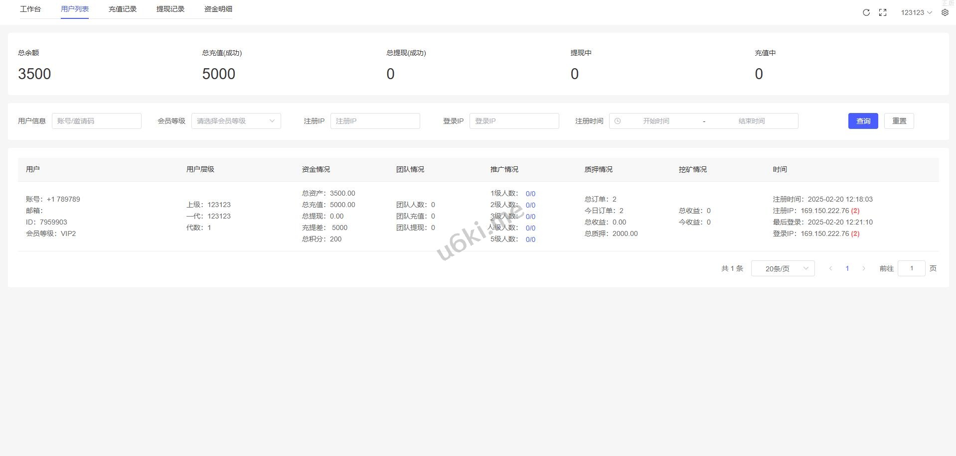 17、代理功能,后台开启用户为代理,即可登录代理端查看代理下级用户情况