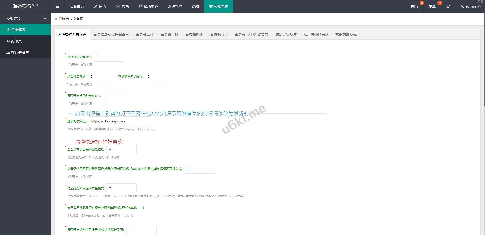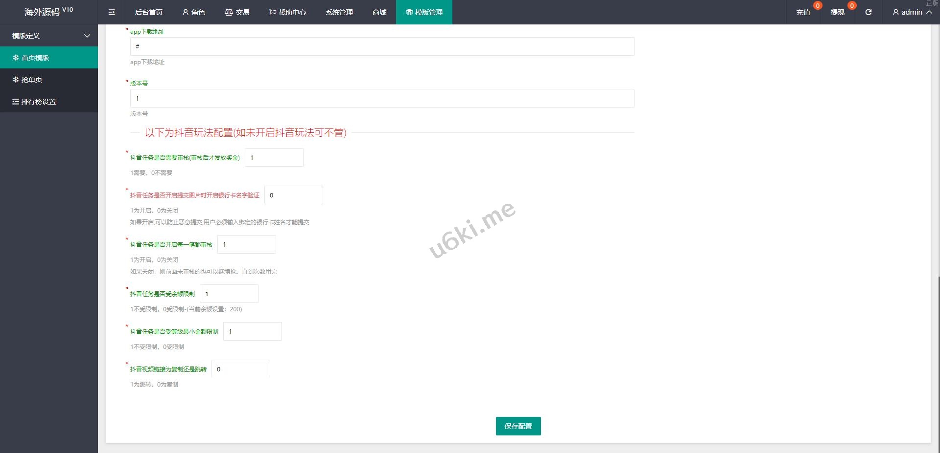 定制版抖音刷单系统/抖音抢单刷单源码/手动自动抢单 此套刷单系统全新定制版本,支持正常刷单玩法,后台可设置用户手动刷单跟自动刷单 手动刷单后台可设置用户订单金额等,新增了抖音玩法前端提交后台审核,系统新增多个功能 前端单中文,支持二开其他语言