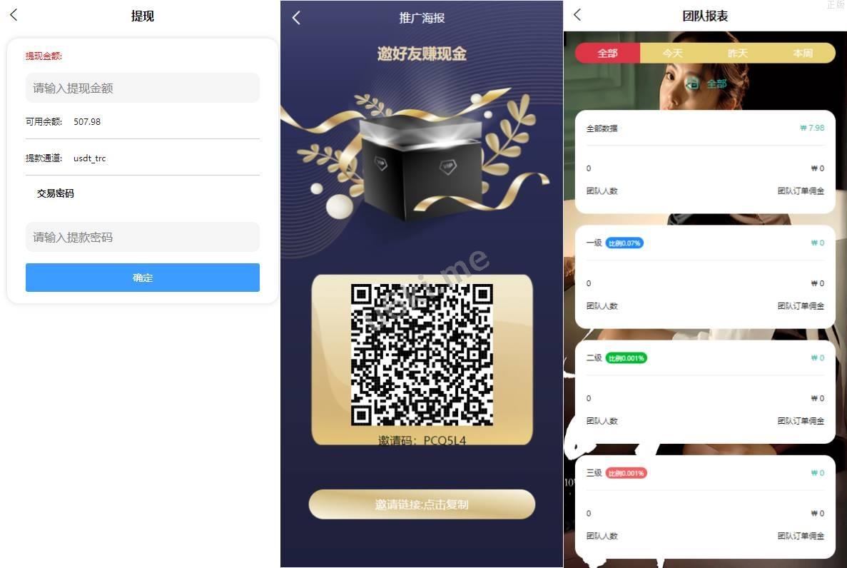 6、充值改为usdt trc和usdt erc方式,提现为银行卡和usdt 如果时代理的用户 代理可以自己审核充值提现订单