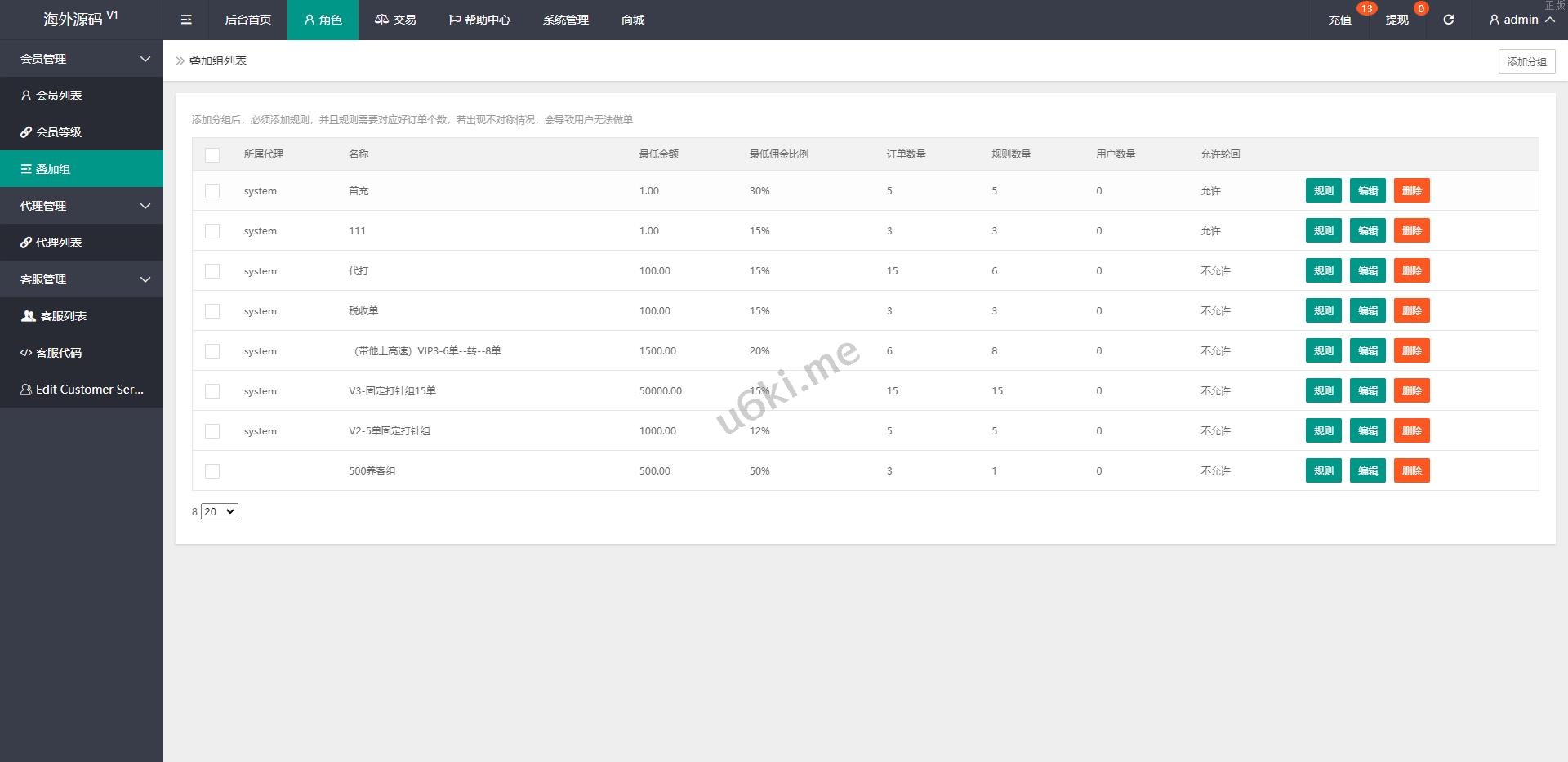 系统支持叠加组、打针、做单等功能