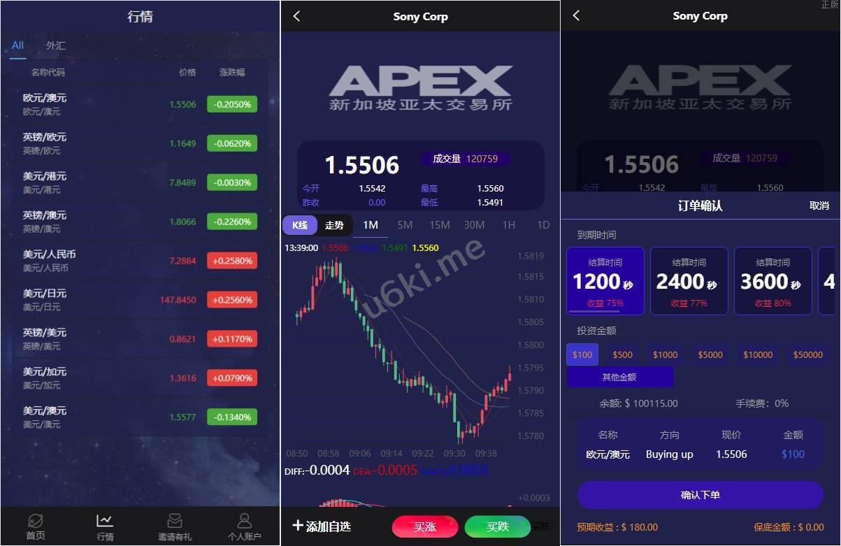 海外APEX新UI多语言微盘外汇系统/时间盘微盘源码