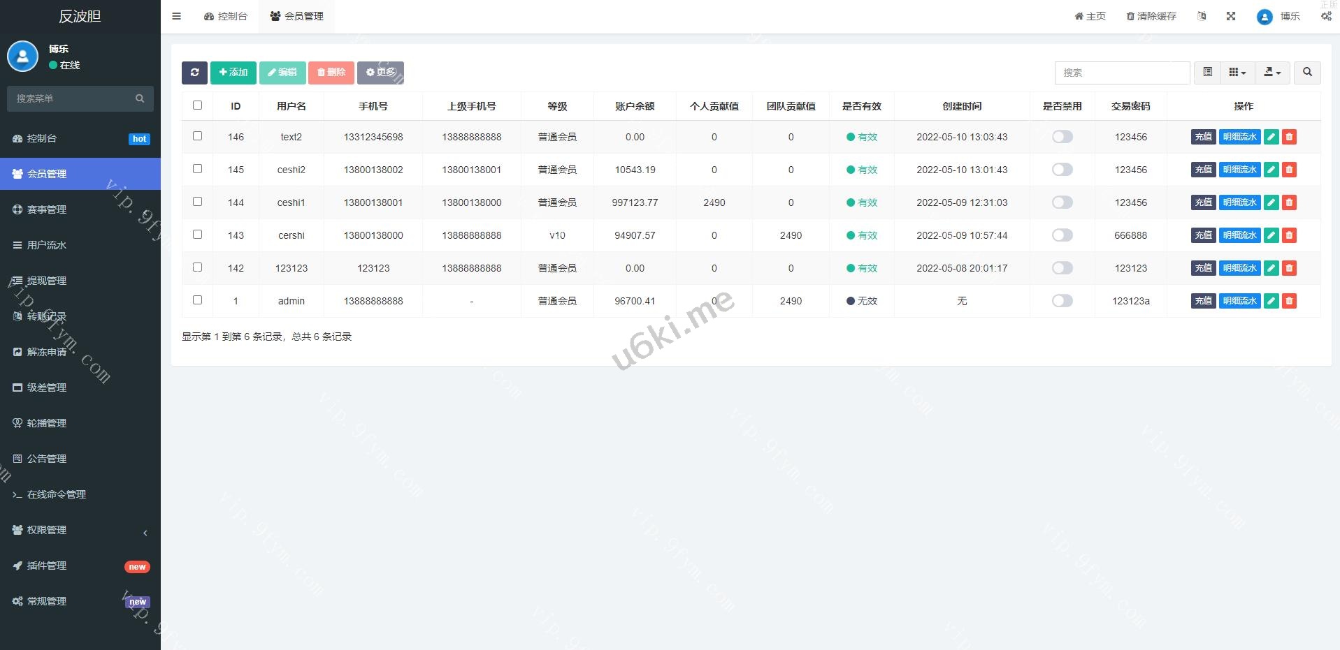 支持USDT充值,会员互转等功能,目前测试接口失效了