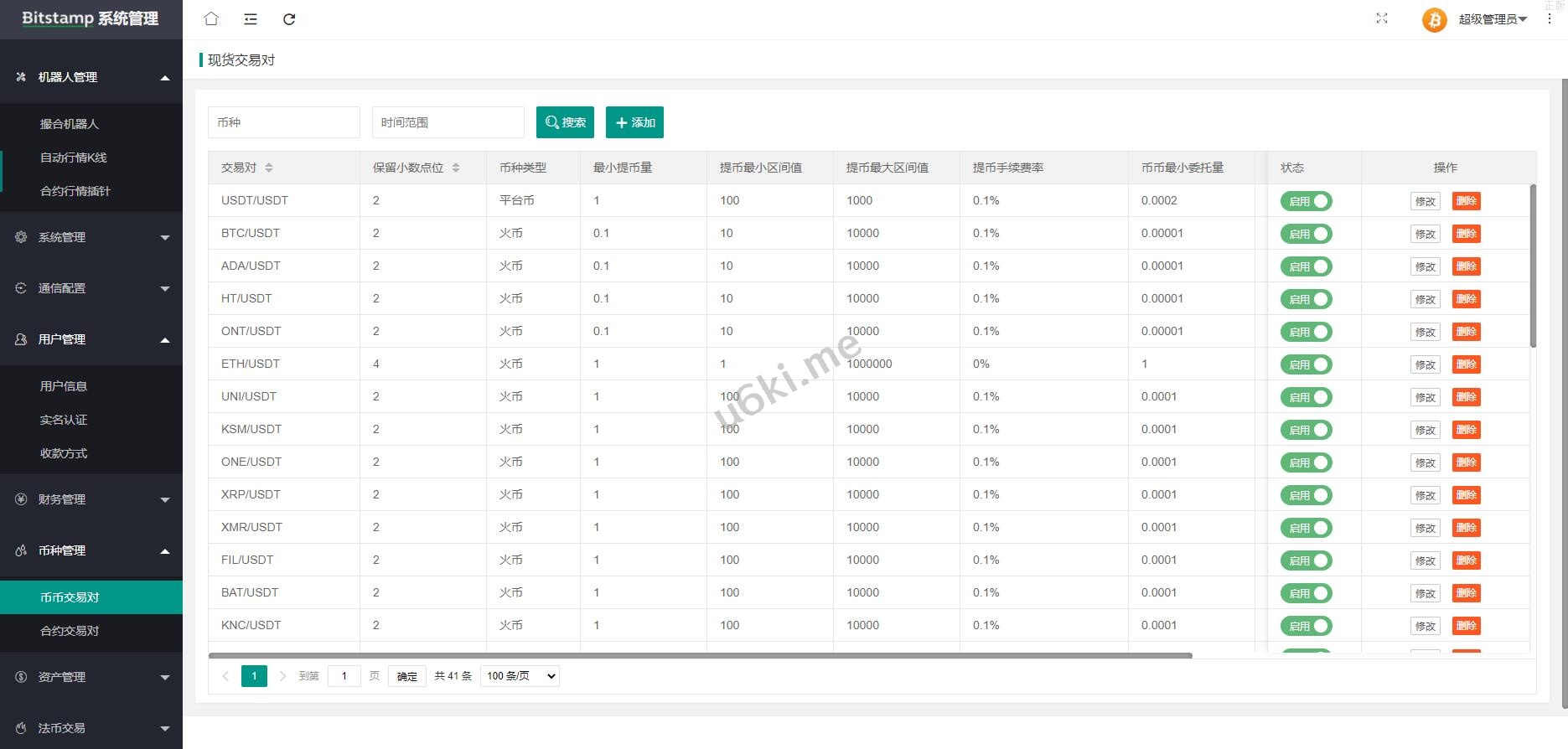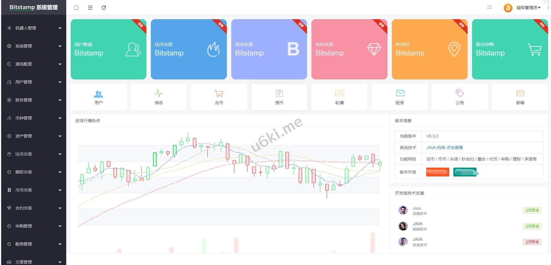 系统带期权、合约、法币交易、可发币控行情,不带理财挖矿