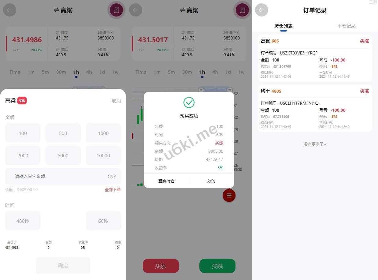 系统前端是全新开发的,该有的功能都有前端K线正常运行结算